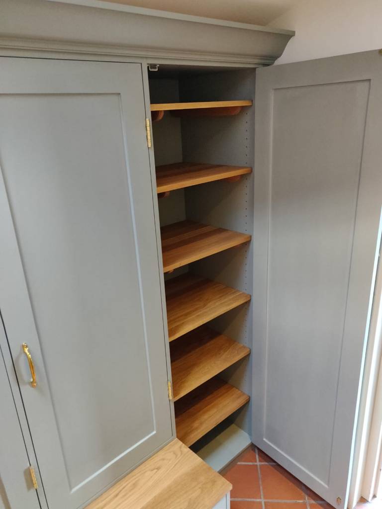 A pair of traditional alcove units made for a beautiful house in Whyteleafe. Shaker style doors and subtle but ornate mouldings above the book shelves give these units a classy feel without imposing on the room.